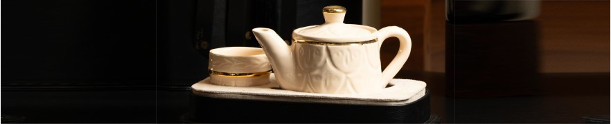 Un coffret raffiné composé d’une théière artisanale marocaine et sa tasse, finement gravées et rehaussées d´or.