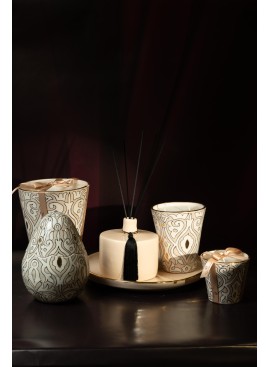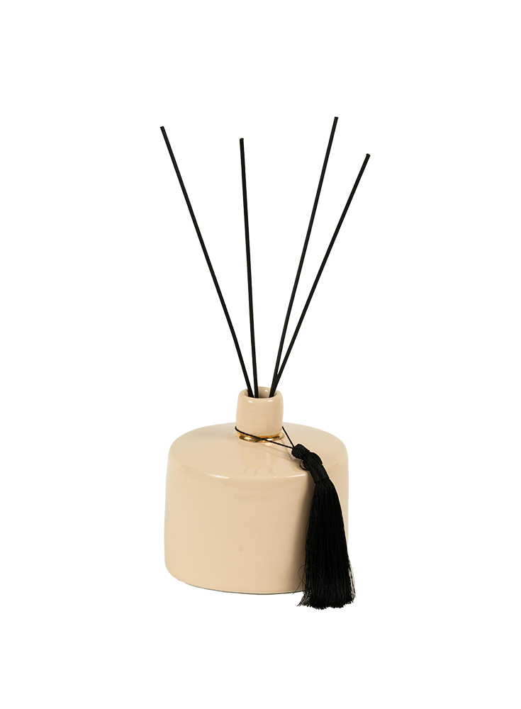 Évocateur des dunes dorées et de la sérénité du désert, le diffuseur Sahara se présente dans une poterie artisanale beige sublimée de délicats reflets dorés.