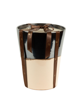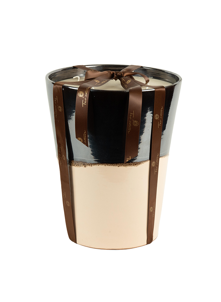 Élégante et contemporaine, la bougie Perle de Sable se dévoile dans une poterie artisanale aux tons contrastés