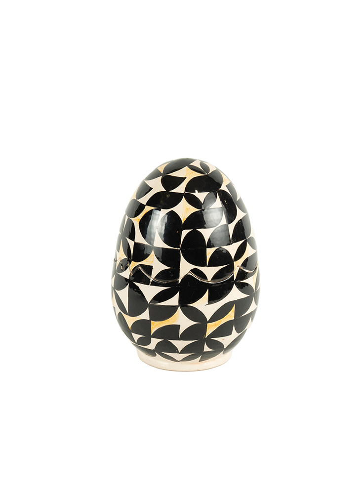 • Poterie artisanale décorée de motifs géométriques noirs, beiges et dorés