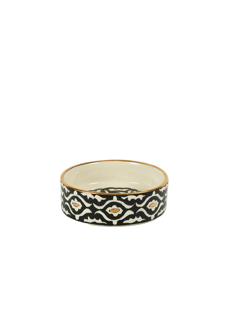 Façonné à la main dans une poterie noble et orné de délicates touches d’or, il accueille fruits, douceurs ou fruits secs avec grâce.
